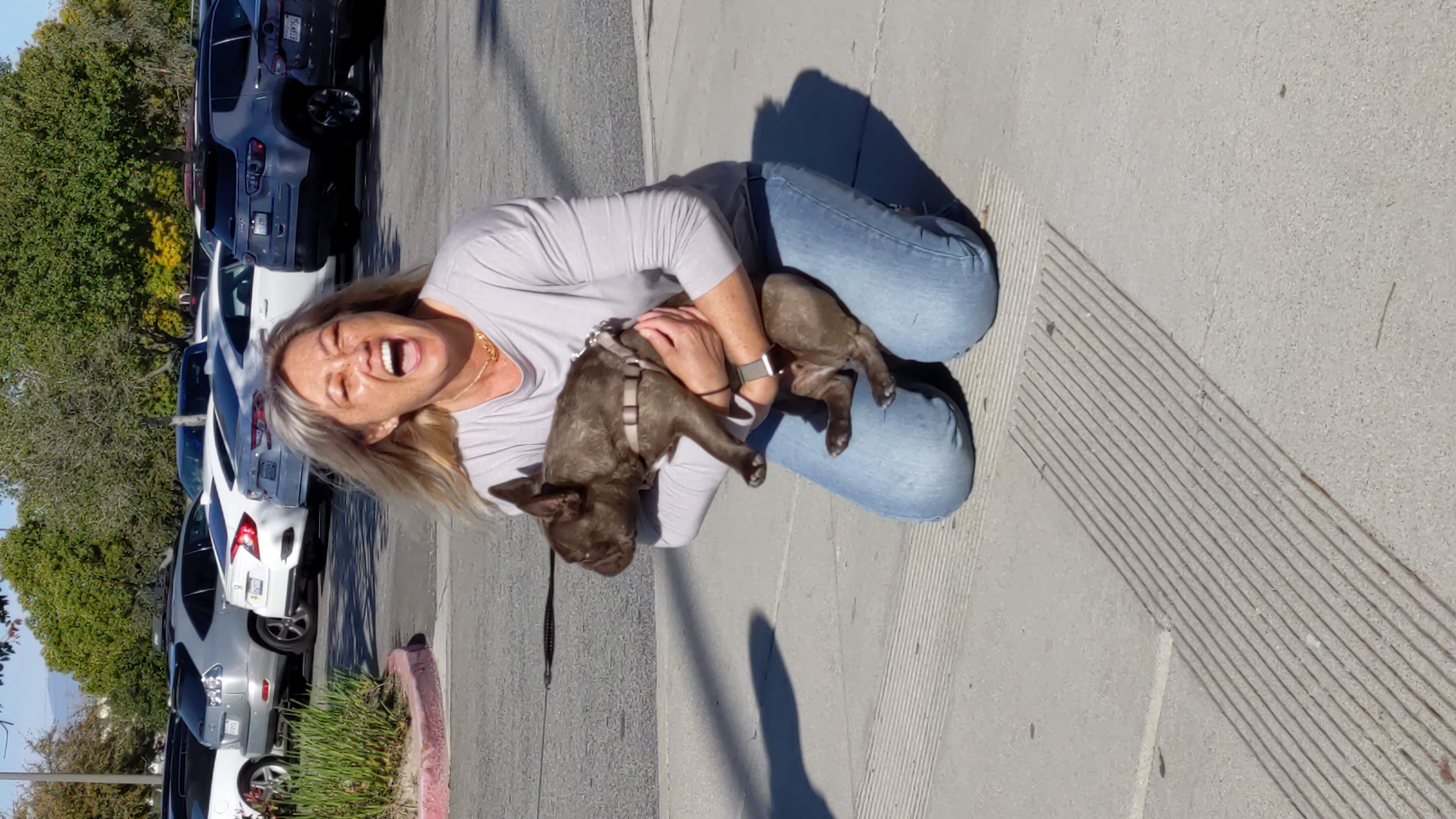Liz with a Frenchie Doggo